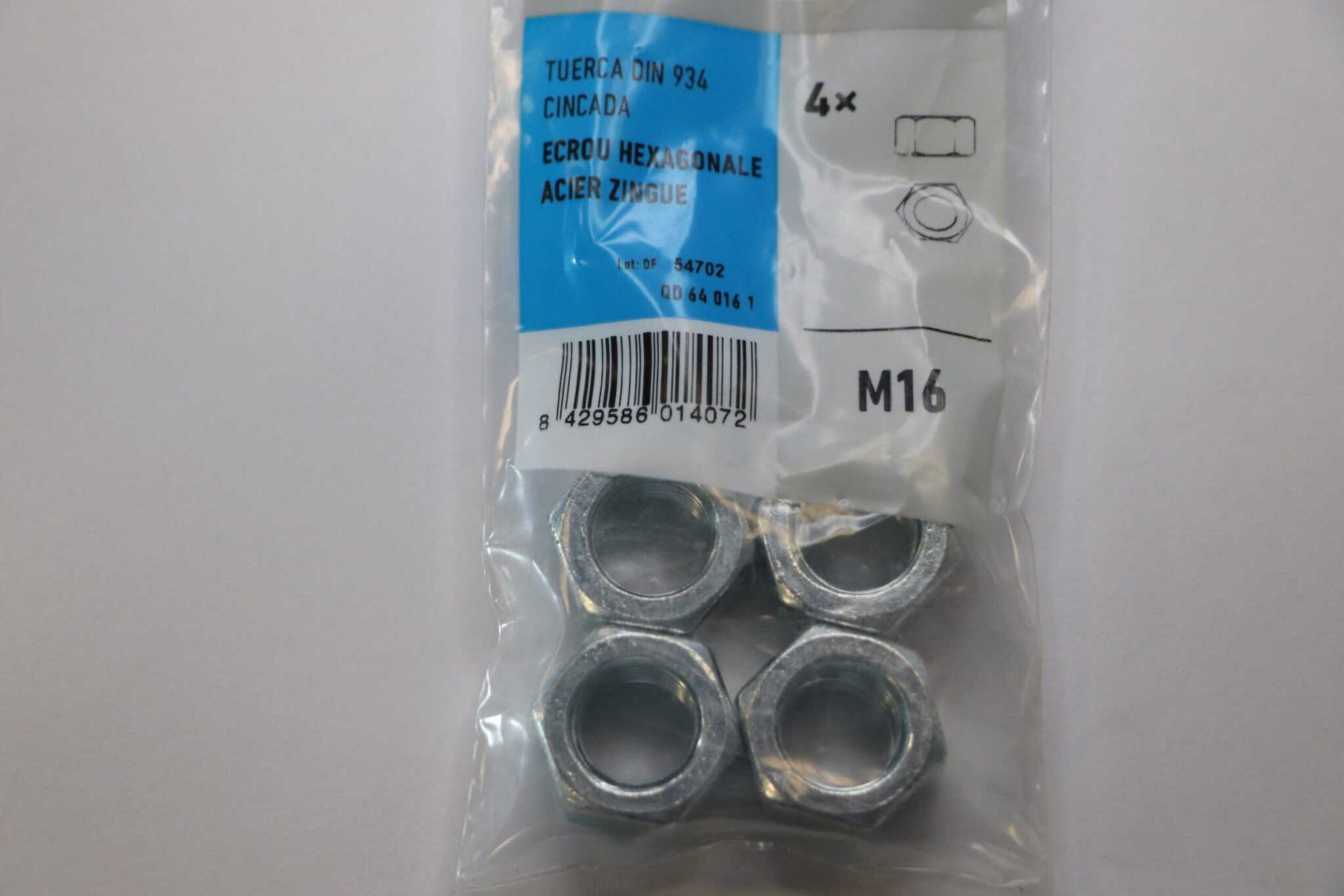 Ecrou diamètre 16 hexagonal acier zingué sac de 4