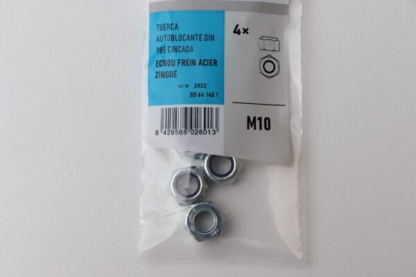 Ecrou frein diamètre 10 hexagonal acier zingué sac de 4