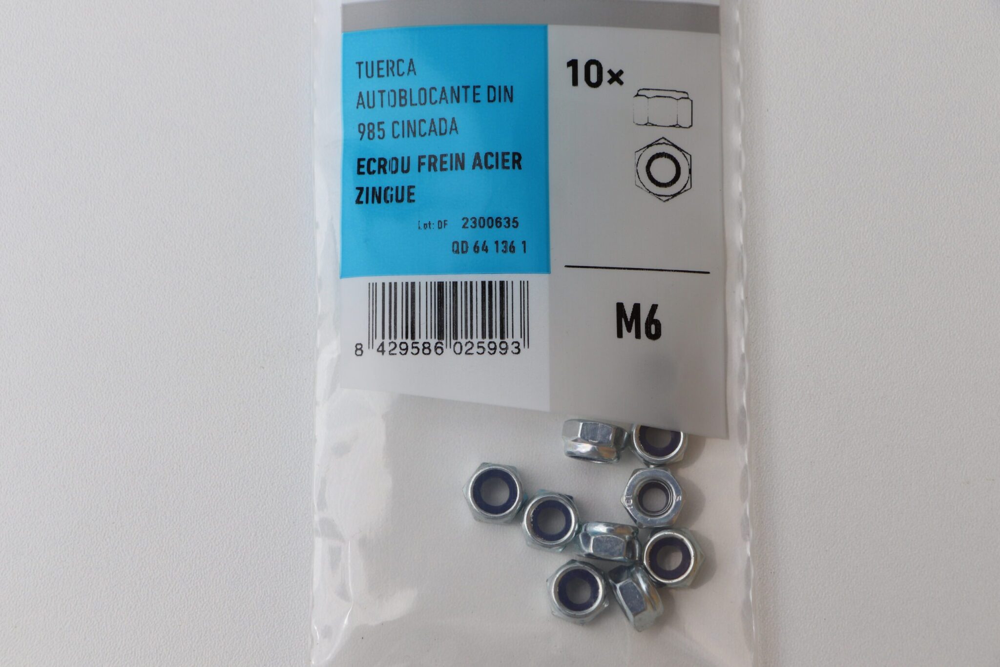 Ecrou frein diamètre 6 sac de 10